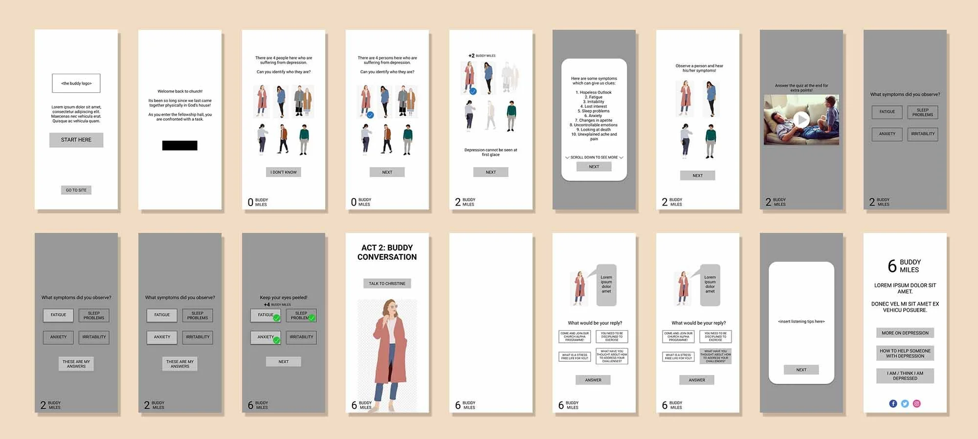 Initially tasked to tackle mental health in a church context (hackathon challenge), our team sought to tackle mental health awareness, without further saturating the plethora of available resources.