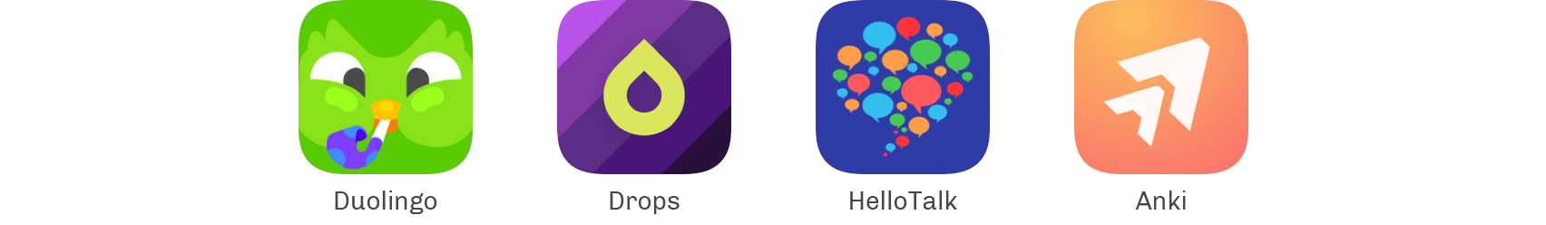 (left to right) Learning vocabulary from Drops, content from iTalki lessons, and words from an online dictionary
