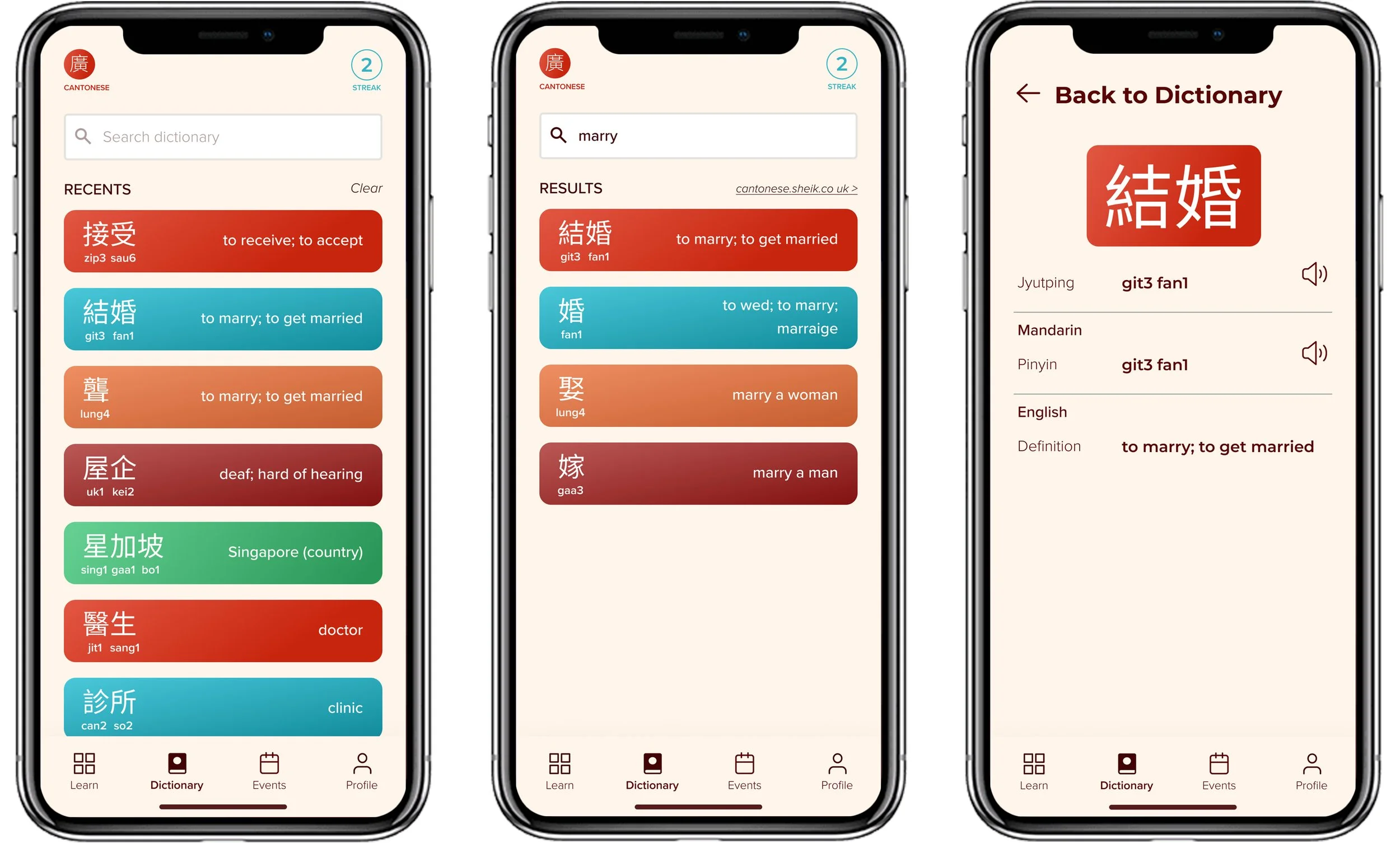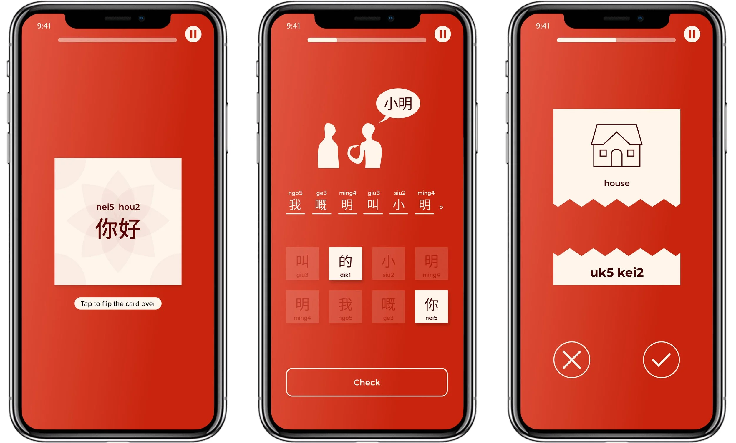 The app also features a dictionary, where users can review learnt words and to learn new ones through inputting English words, Chinese characters, or romanisations.